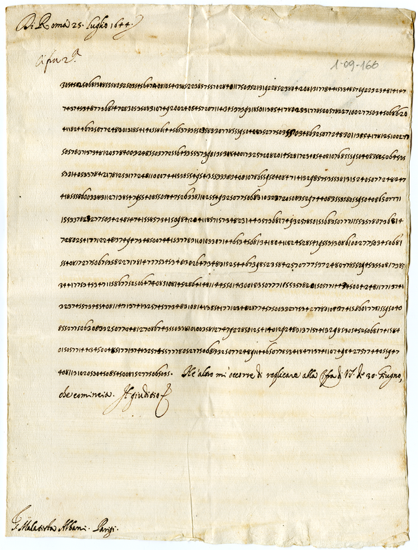 Lettera del cardinale Barberini Francesco senior a Malatesta Albani (1644 luglio 25)