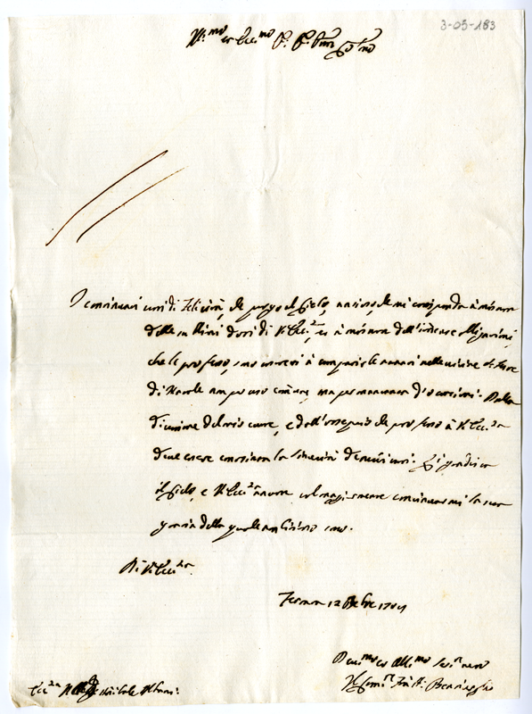 Lettera di fra Antonio Bentivoglio ad Annibale Albani (1708 dicembre 12)