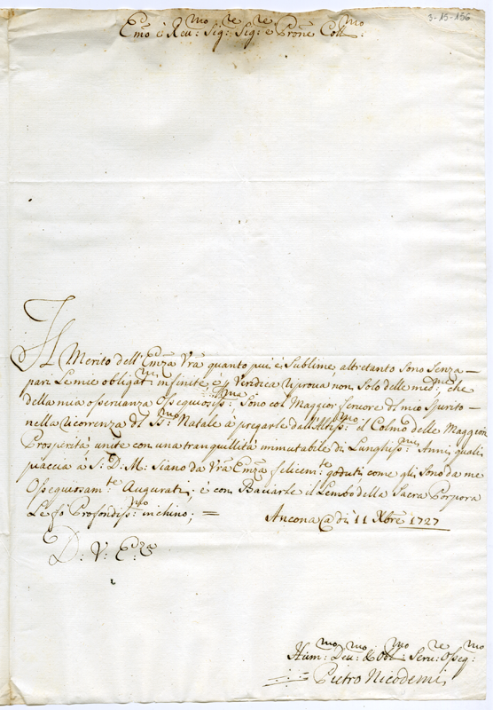 Lettera di Pietro Nicodemi al cardinale Annibale Albani (1727 dicembre 11)