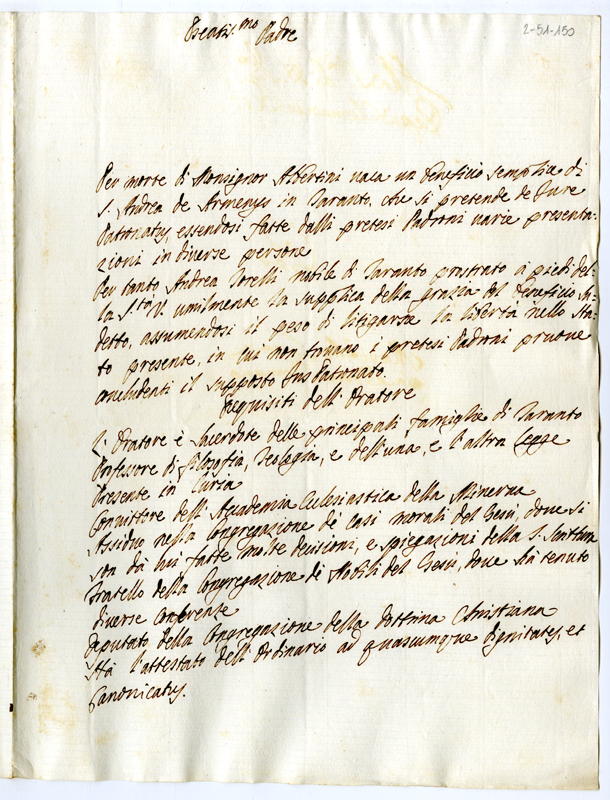 Lettera di Andrea Torelli a papa Clemente XI (1700-1721)