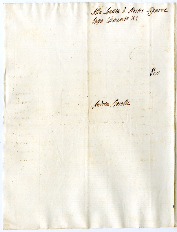 Lettera di Andrea Torelli a papa Clemente XI (1700-1721)