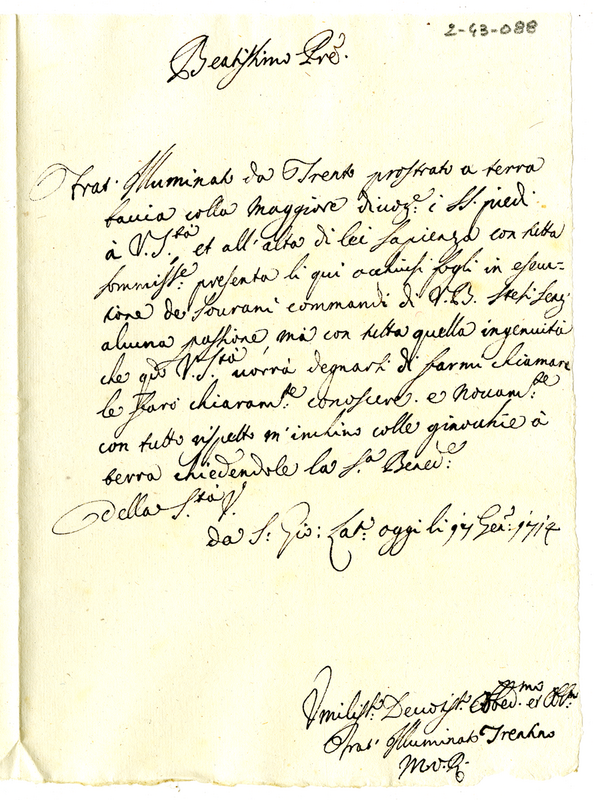 Lettera di fra Illuminato da Trento a papa Clemente XI (1714 gennaio 17)