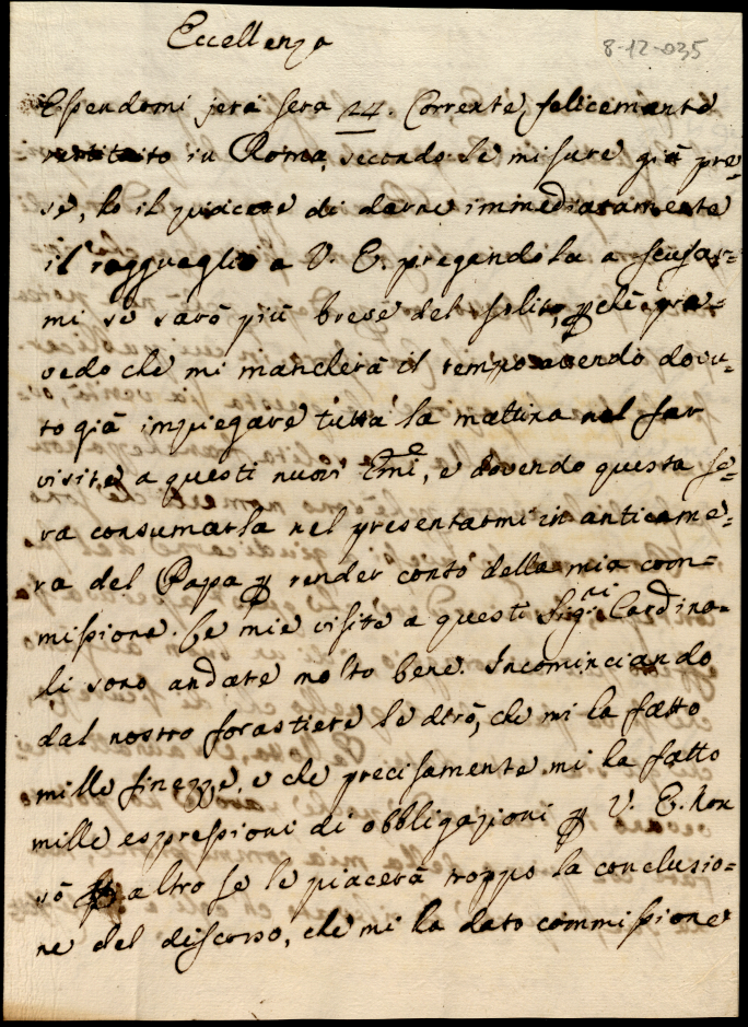 Lettere ricevute in Urbino nella permanenza in Urbino nei mesi di maggio, giugno e luglio 1777