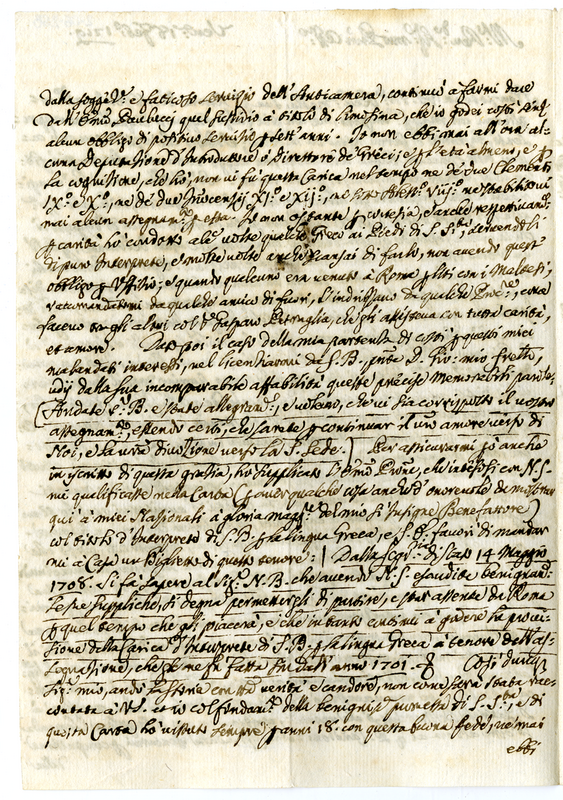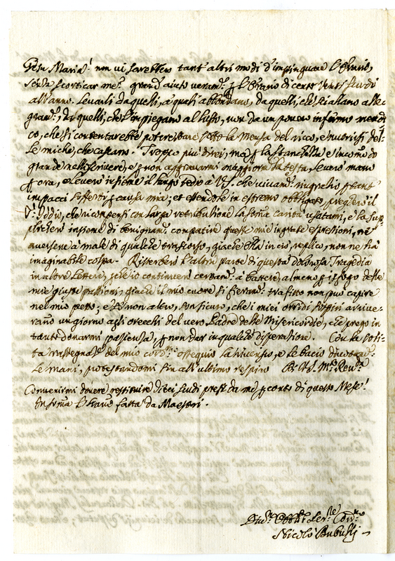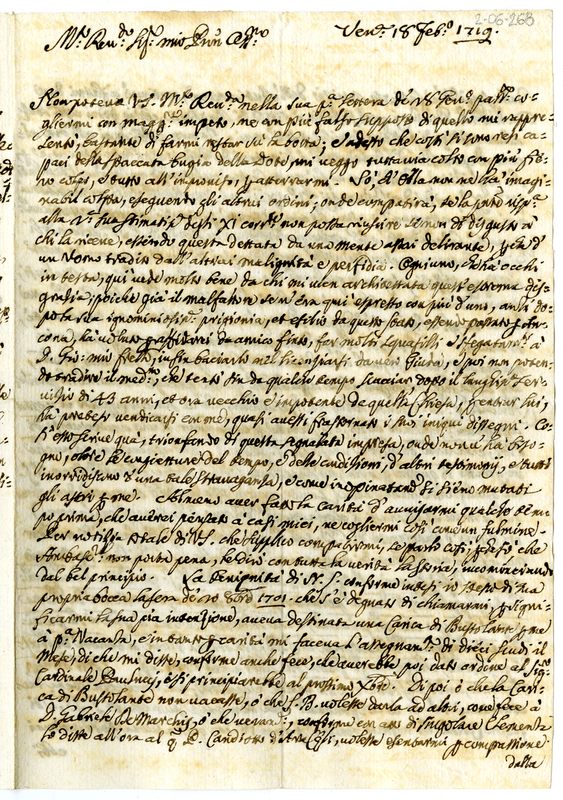 Lettera di Nicolò Bubulli a molto reverendo Signore (1719 febbario 18)