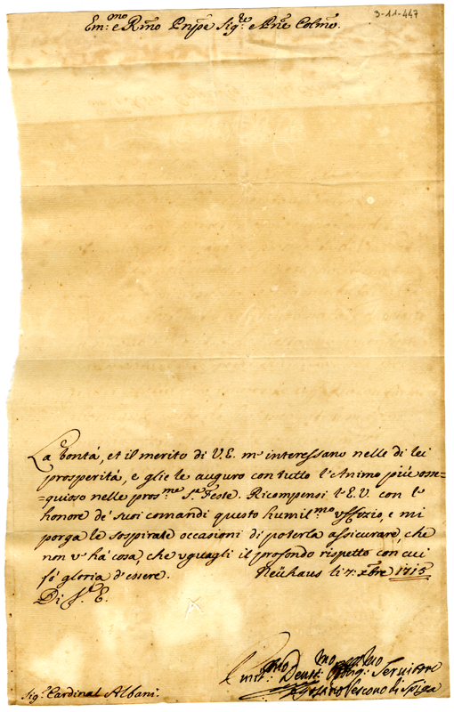 Lettera del vescovo di Spiga al cardinale Annibale Albani (1715 dicembre 7)