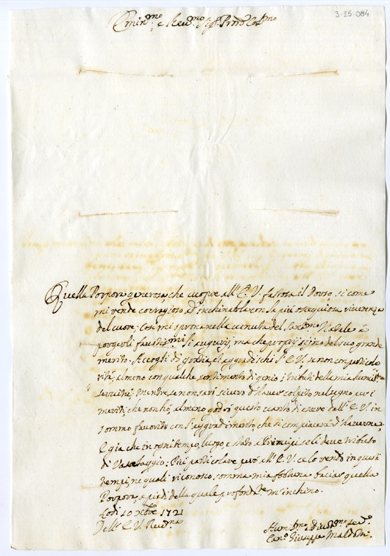 Lettera di Giuseppe Maldotti al cardinale Annibale Albani (1721 dicembre 10)