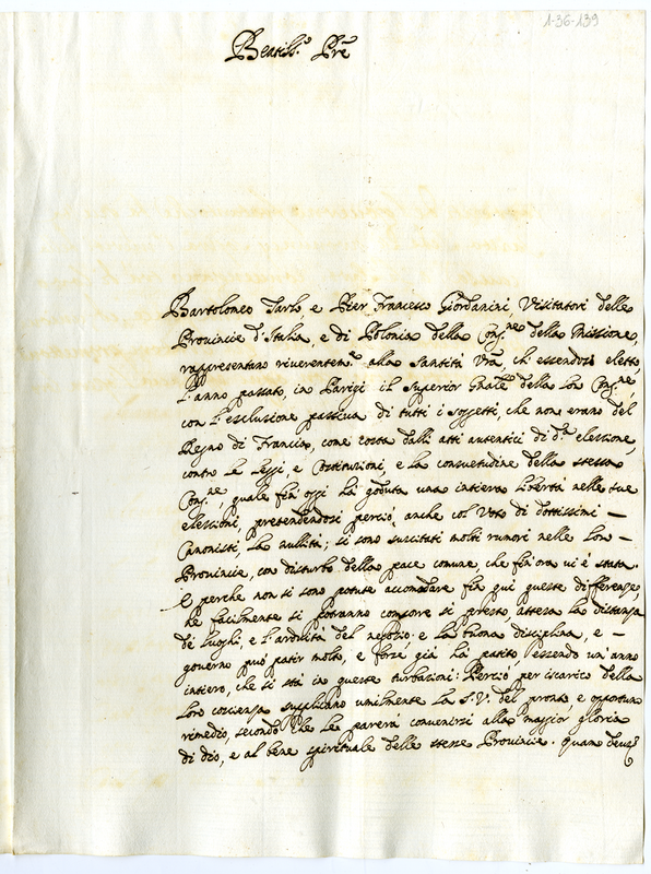 Lettera dei Visitatori delle Province d'Italia e di Polonia della Congregazione della Missione a Papa Innocenzo XII (1691-1700)