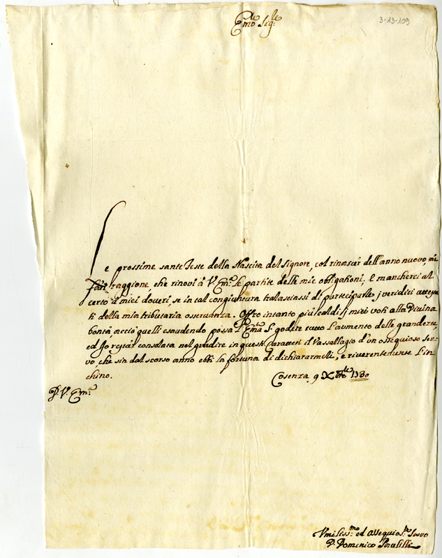 Lettera di don Domenico Paulilli al cardinale Annibale Albani (1730 dicembre 9)