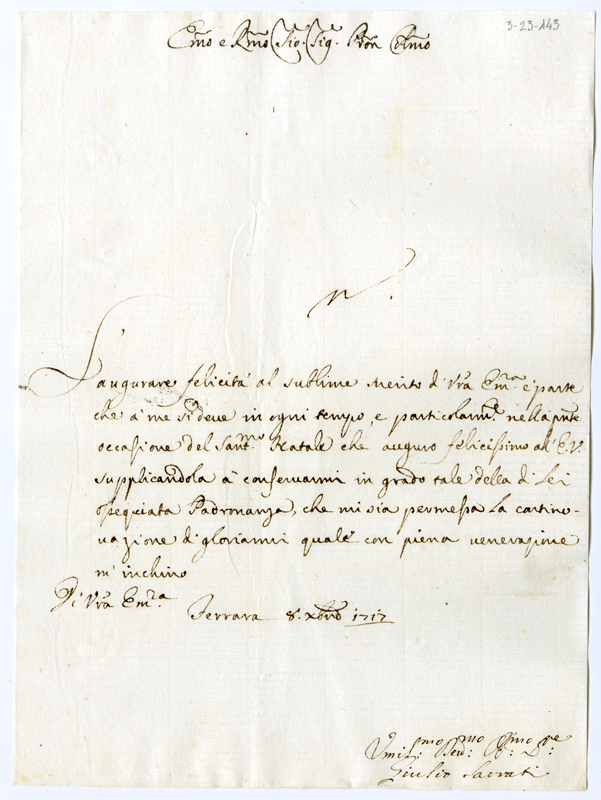 Lettera di Giulio Sacrati al cardinale Annibale Albani (1717 dicembre 8)