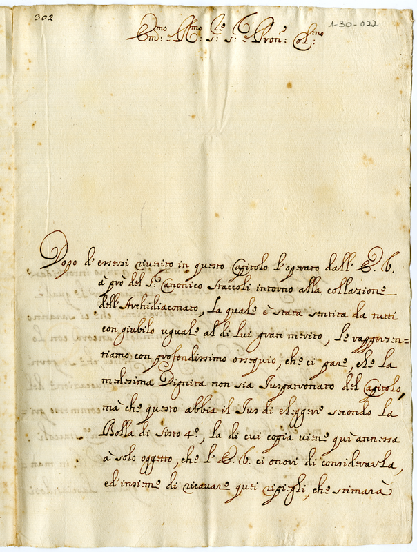 Ringraziamento per l'elezione del canonico Staccoli ad Arcidiacono. Richiesta di informazioni