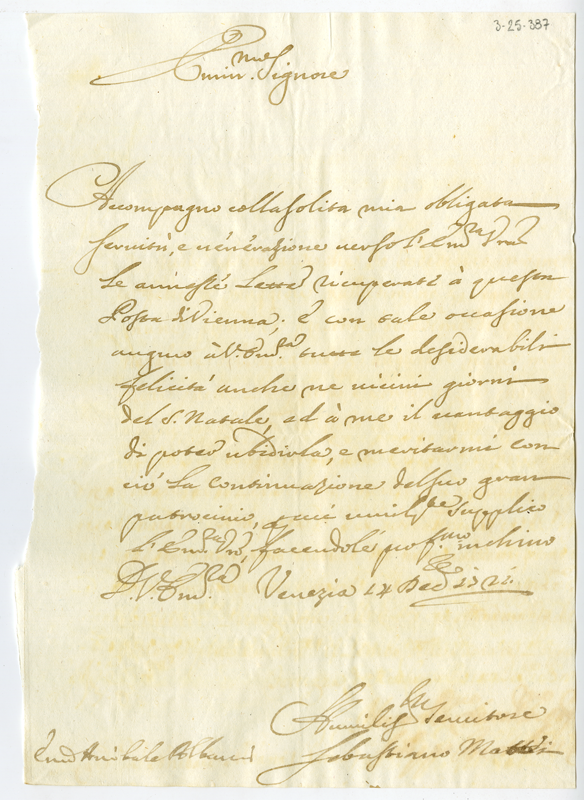 Lettera di Sebastiano Mattei al cardinale Annibale Albani (1721 dicembre 14)