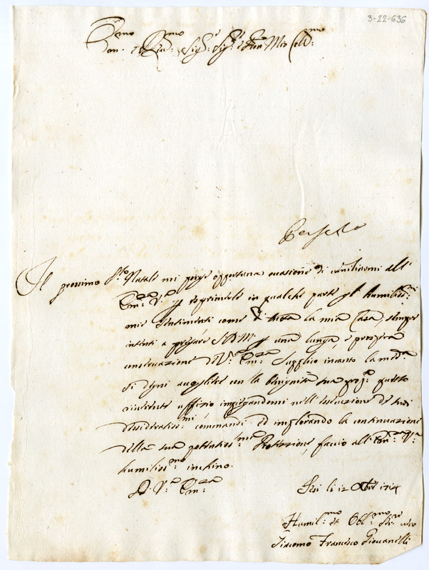 Lettera di Giacomo Francesco Giovannelli al cardinale Annibale Albani (1714 dicembre 12)