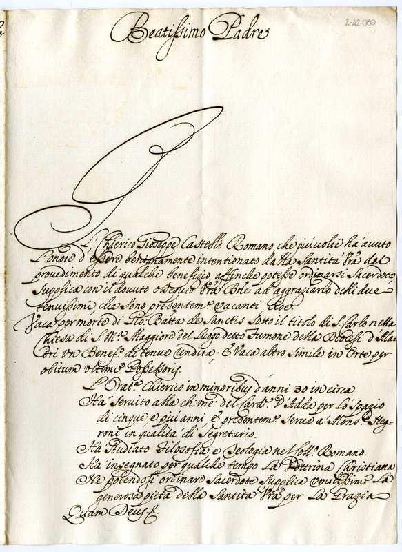 Lettera di Giuseppe Castelli a papa Clemente XI (1700-1721)