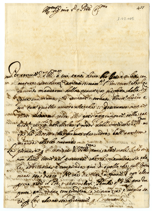 Flamino Palma rassicura Carlo Albani che l’atto di rinuncia fatto dalla nuora è ben fatto e con ogni cura giuridica e gli invia una minuta di ratificazione