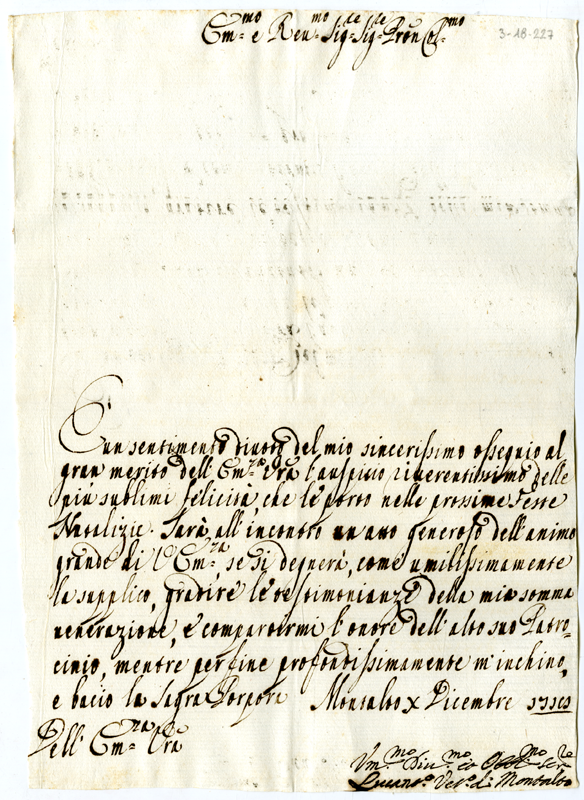 Lettera di Lucantonio vescovo di Montalto ad Annibale Albani (1718 dicembre 10)