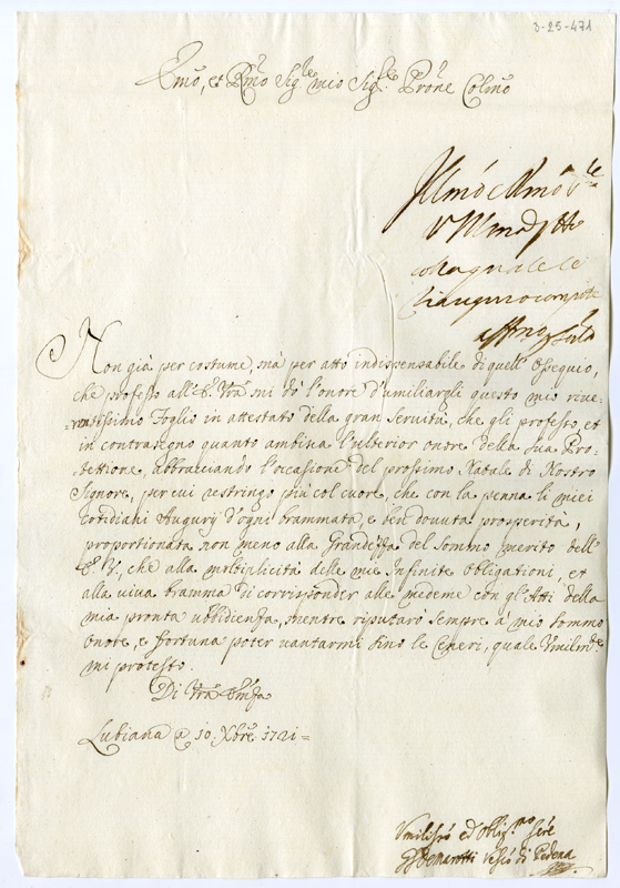 Lettera di Giorgio Saverio de Marotti vescovo di Pedena al cardinale Annibale Albani (1721 dicembre 10)