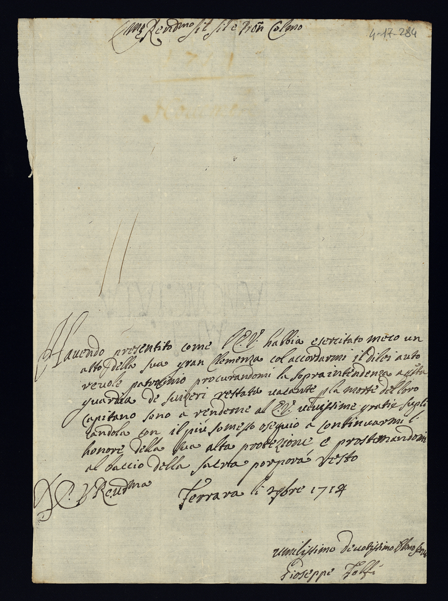 1714. Lettere di negozio e di complimento all'Illustrissima. Semestre secondo