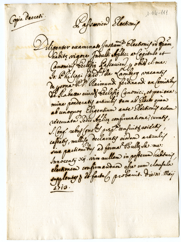 | dc.description | Approvazione da parte della Sacra Congregazione Romana della elezione del padre Raimondo Fernando dei Conti di Rabatta a vescovo di Passau | |