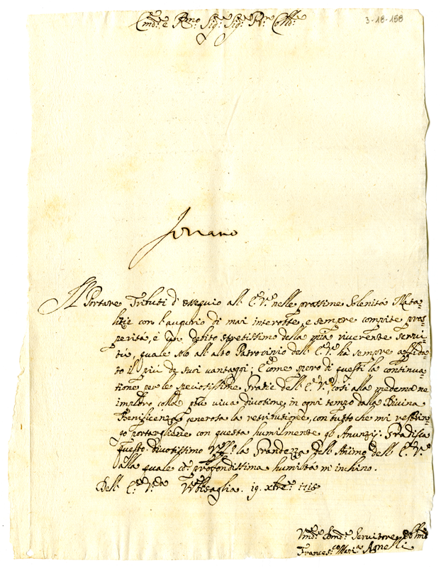 Lettera di Francesco Maria Agnelli ad Annibale Albani (1718 dicembre 19)