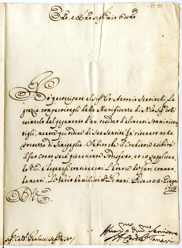 Lettera del cardinale Tanara al cardinale Paolucci (1713 giugno 23)