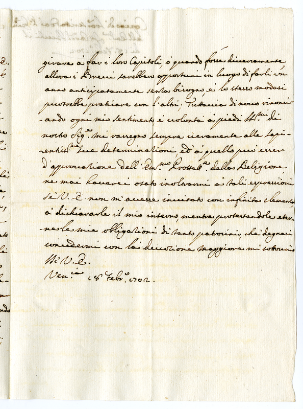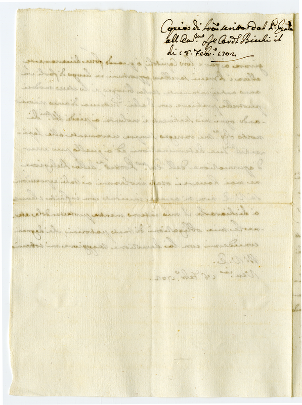 Copia di lettera scritta dal padre generale all'eminentissimo signor card. Bichi il di 18 febraio 1702