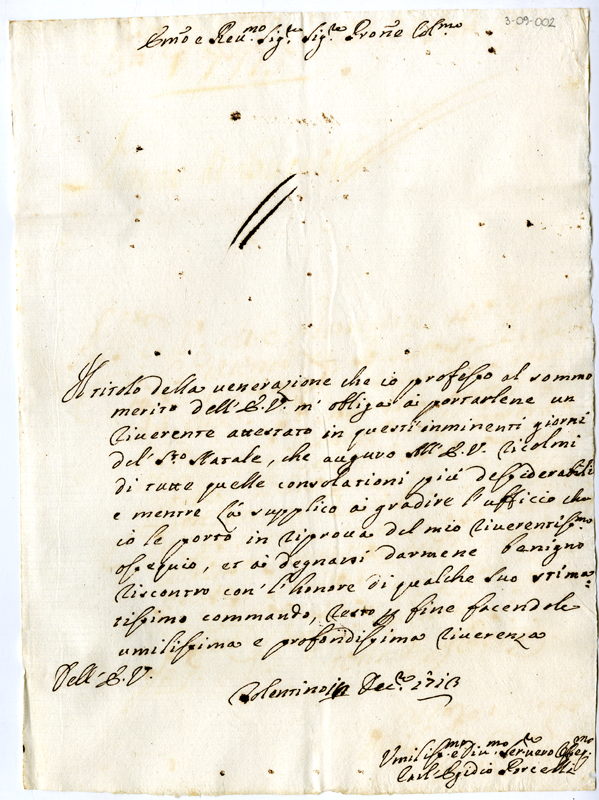 Lettera di Carl'Egidio Porcelli al cardinale Annibale Albani (1713 dicembre 18)