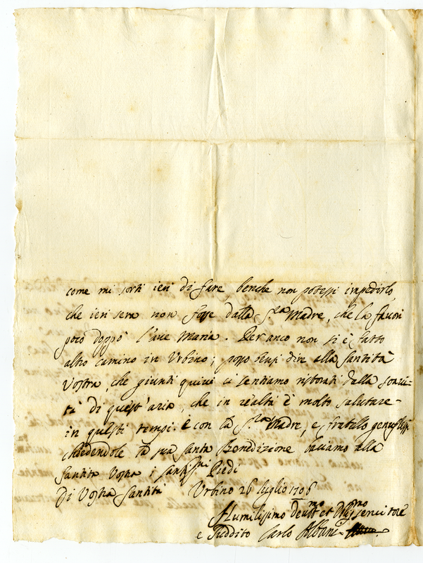 Lettera di Carlo Albani a papa Clemente XI (1706 luglio 26)