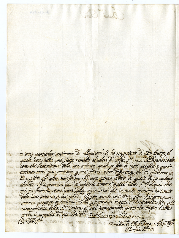 Lettera di Olimpia Albani a papa Clemente XI (1703 febbraio 19)