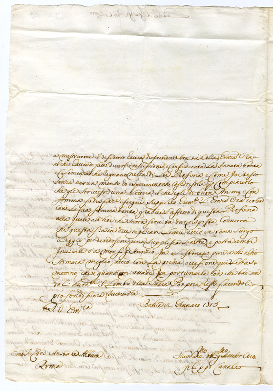 Lettera di Filippo Canale al Cardinale Annibale Albani (1715 gennaio 12)