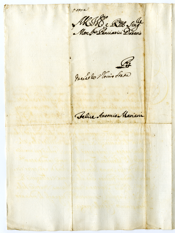 Lettera di Felice Antonio Mariani a Monsignore Panciatici (1689)
