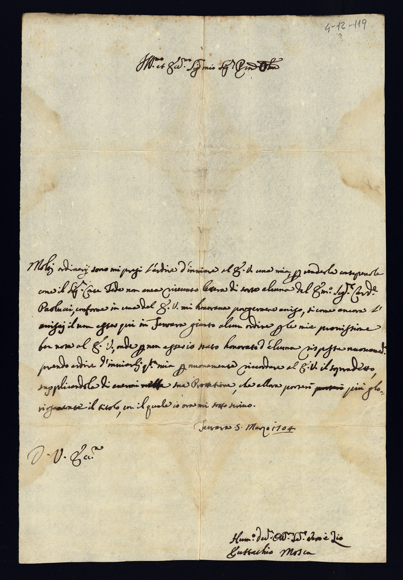 Lettere di negozio e di complimento all'Illustrissima Eccellenza dell'anno 1704. Semestre primo