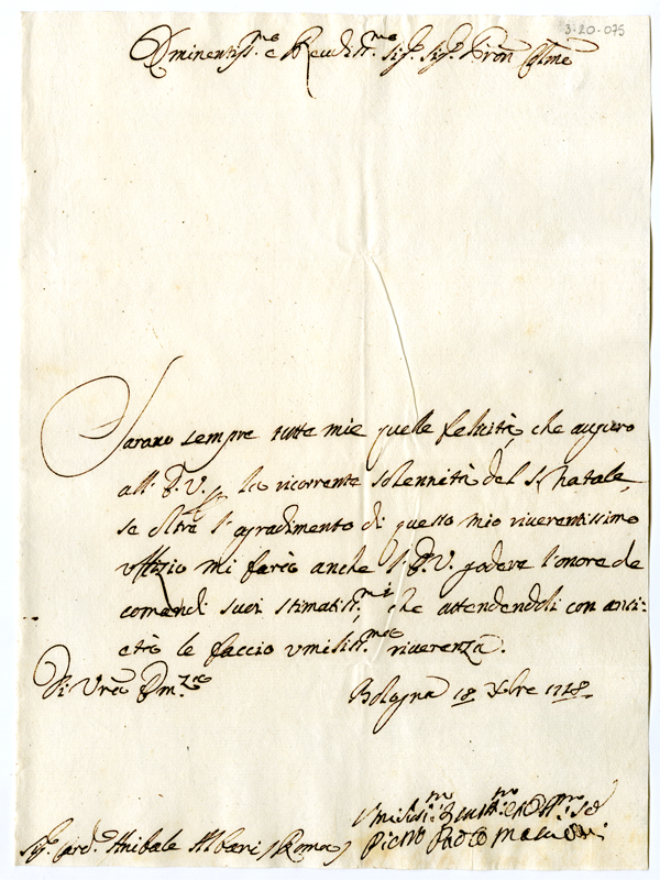 Lettera di Pietro Paolo Malvezzi al cardinale Annibale Albani (1728 dicembre 18)
