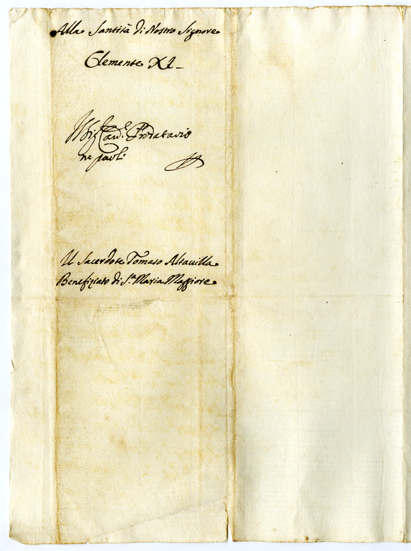 Lettera del sacerdote Tommaso Altavilla a papa Clemente XI (1720)