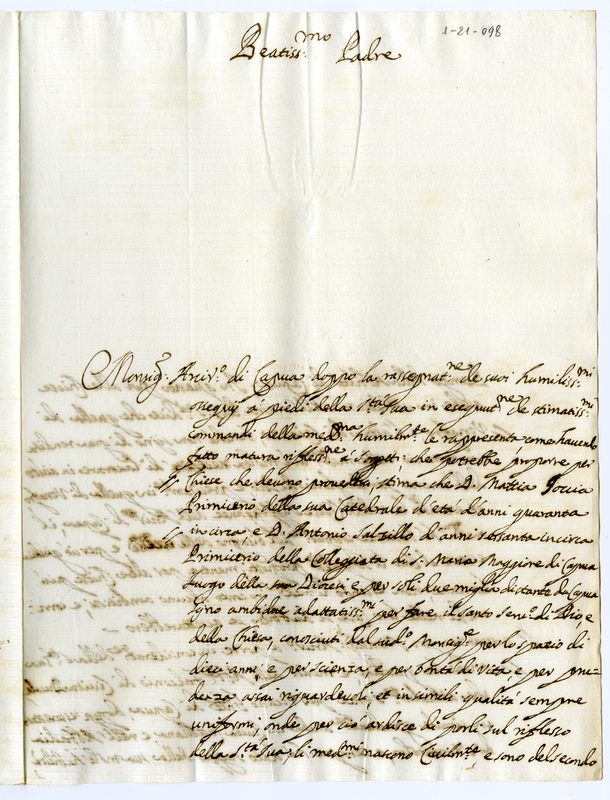 Lettera dell'arcivescovo di Capua a papa Clemente XI (1700-1721)