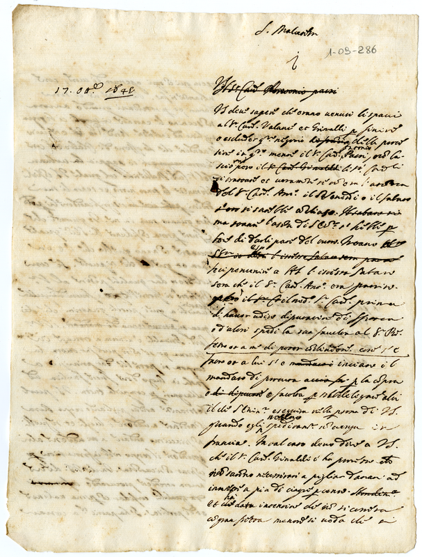 Minuta di lettera scritta a Malatesta Albani (1645 ottobre 17)