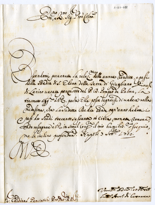 Lettera di Ludovico Arcivescovo di Cesarea al Cardinale Panciatici (1700 settembre 7)