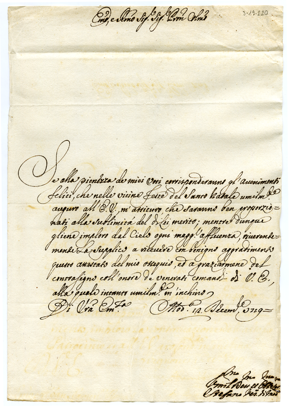 Lettera di Stefano vescovo di Modena ad Annibale Albani (1719 dicembre 12)