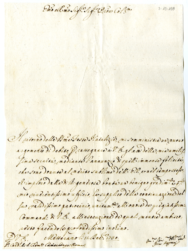 Lettera di Pietro Magnani al cardinale Annibale Albani (1730 dicembre 11)