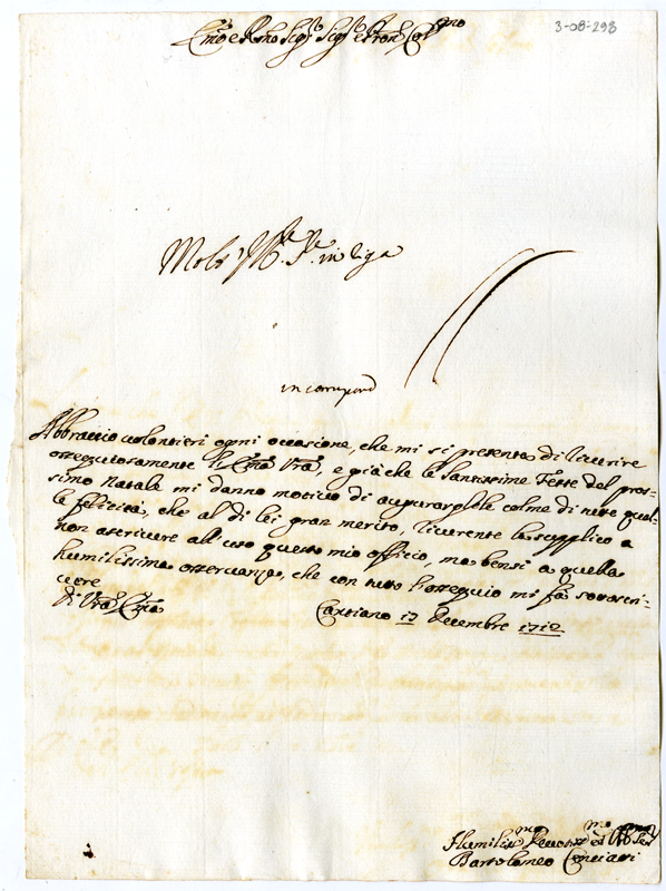 Lettera di Bartolomeo Cenciatti al cardinale Annibale Albani (1712 dicembre 17)