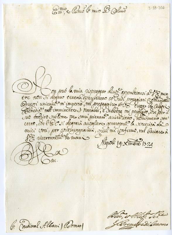 Lettera del principe di Scanno al cardinale Annibale Albani (1724 dicembre 19)