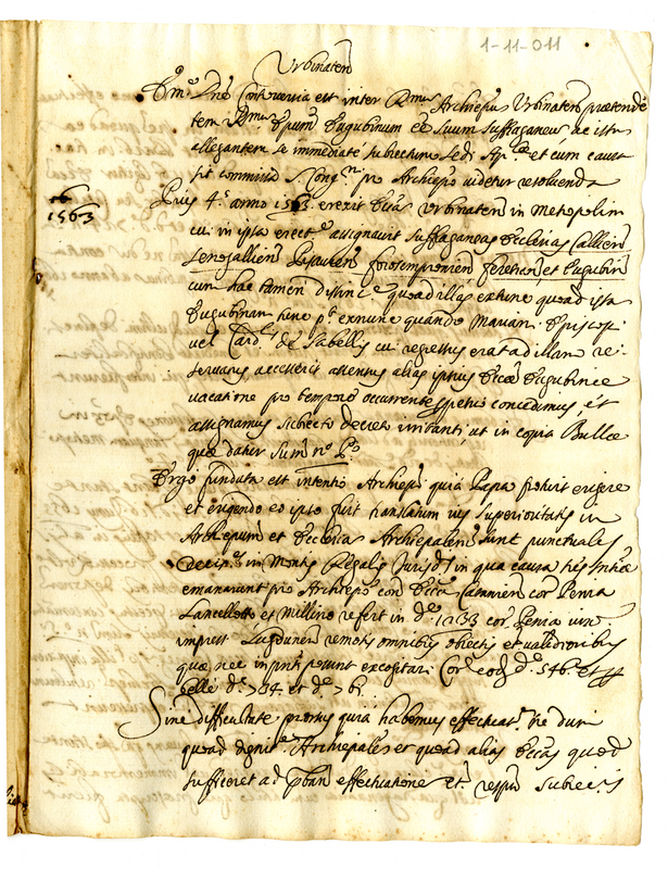 S. Congregazione Concilii Urbinatensis Pro Iacobo de Amgelis Archiepiscopo Urbinatemsis contra Episcopum Eugubinum (1661 agosto 20)