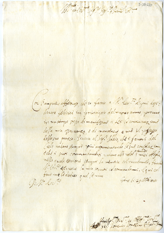 Lettera di Giovanni Domenico Lomellino al cardinale Annibale Albani (1712 dicembre 29