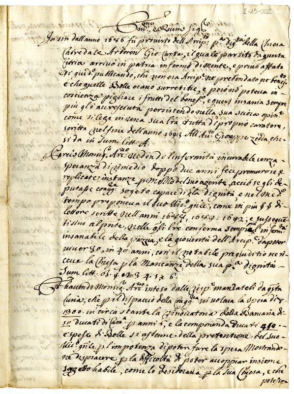 Lettera del canonico Pietro Francesco Marras al cardinale Panciatici (1691-1700)