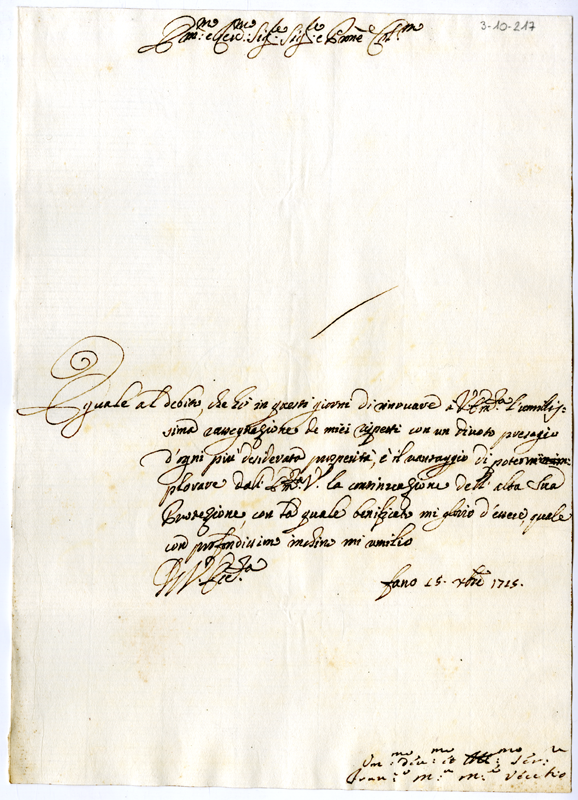 Lettera di Francesco Maria Monte Vecchio al cardinale Annibale Albani (1715 dicembre 15)