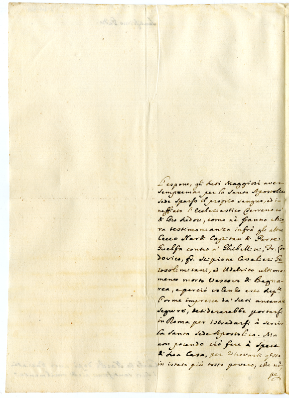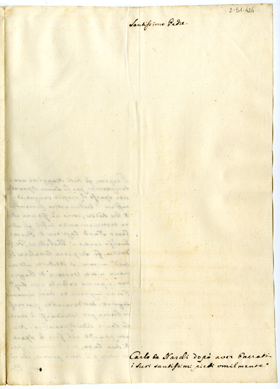 Lettera di Carlo de Nardi a papa Clemente XI (1708)