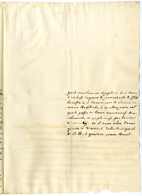 Trasmette l'allegato memoriale e chiede di poter avere benefici ecclesiastici per potersi mantenere in Roma al servizio della santa sede, grazie anche ai meriti della famiglia