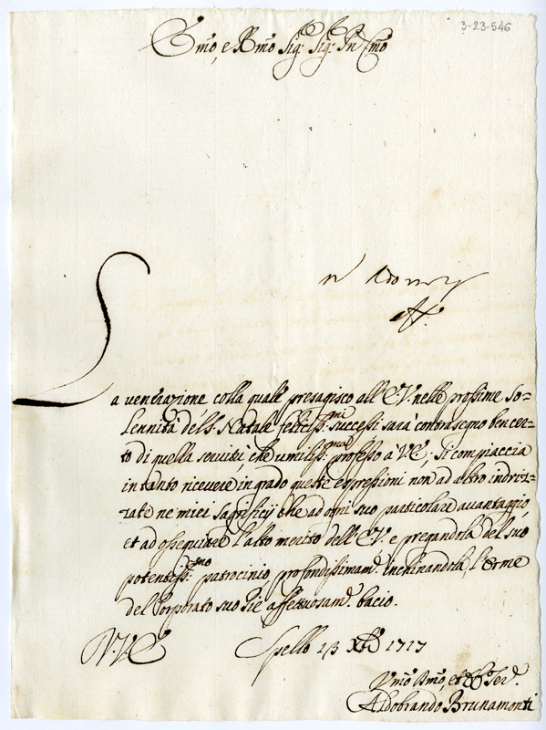 Lettera di Aldobrando Brunamonti al cardinale Annibale Albani (1717 dicembre 13)