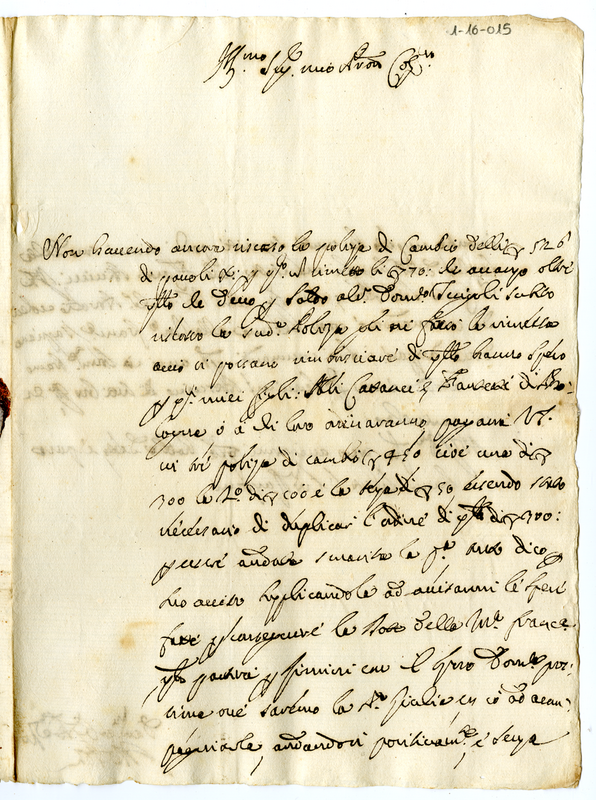 Lettera di Giovanni Andrea Olivieri degli Abbati a Giovanni Francesco Albani (1675 luglio)