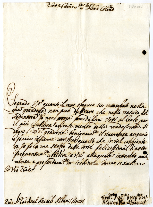 Lettera di Alessandro Marucelli al cardinale Annibale Albani (1728 dicembre10)