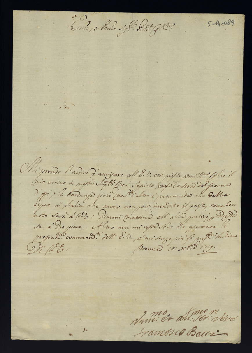 Lettere di confidenza. 1719